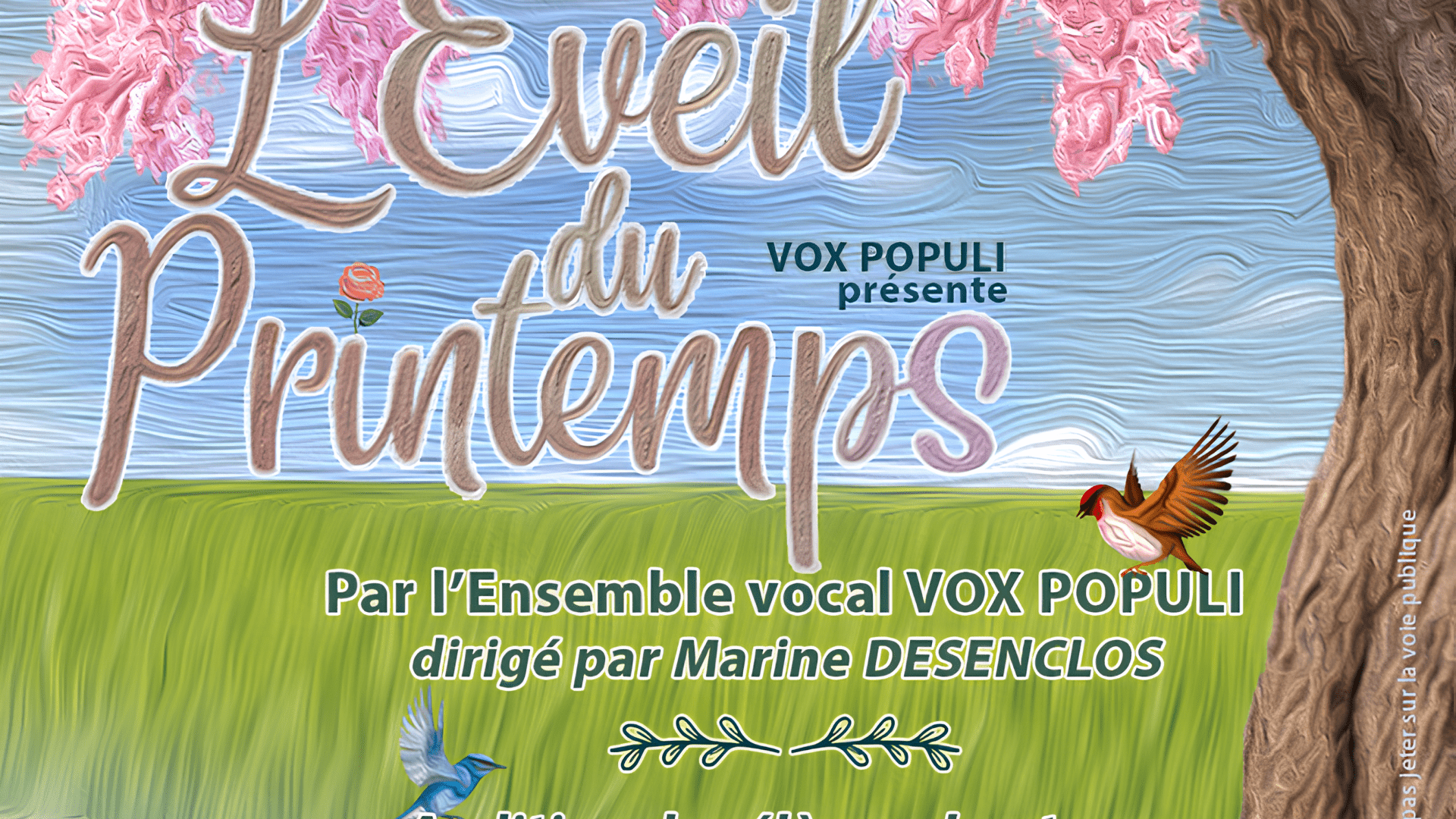 Dirigé par Marine Desenclos, l'ensemble vocal Vox Populi vous propose un après-midi lyrique autour d'airs de La Périchole de J. Offenbach et de L'Élixir d'Amour de G. Donizetti, extraits de sa nouvelle production qui sera jouée en novembre 2026 à Oésia (Notre-Dame-d'Oé) et à la salle des fêtes de Saint-Pierre-des-Corps.
