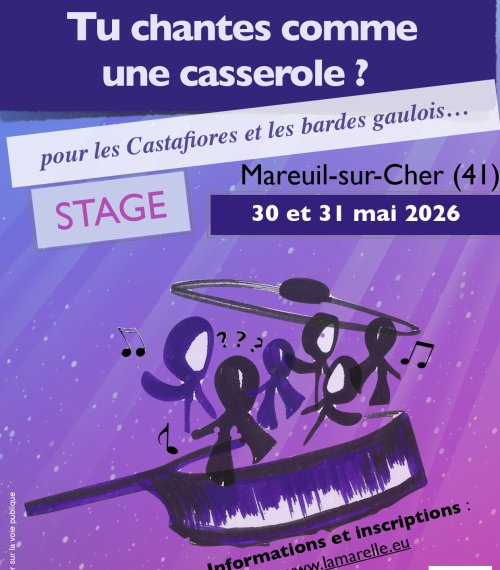 Tarif : 160 € L'adhésion à l'association (15 €) est obligatoire pour participer à nos stages ; vous devrez créer un compte personnel et adhérer pour vous inscrire. Toutes les données personnelles communiquées lors de votre inscription seront strictement réservées à l'usage interne de l'association La Marelle. En partenariat avec la commune de Mareuil sur Cher